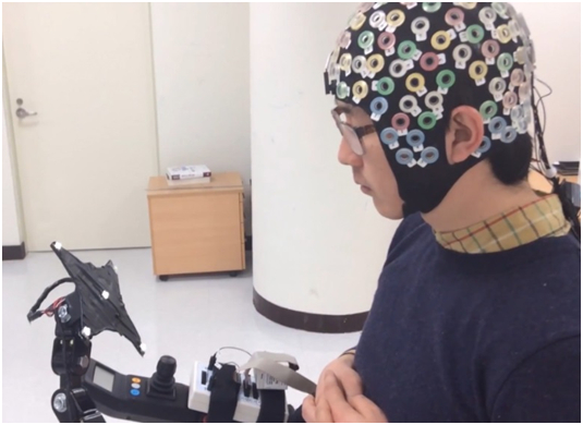 D. Экзоскелеты с управлением на основе нейронной активности (электроэнцефалограмма головного мозга). В настоящее время является одним из наиболее перспективных направлений развития систем получения управляющих сигналов, однако вопрос пока не исследован в должной мере. В качестве примера экзоскелета с таким способом управления можно привести совместный проект Кореи и Германии (рис. 20), направленный на создание интерфейса головной мозг-машина и управление на его основе экзоскелетом нижних конечностей [16].