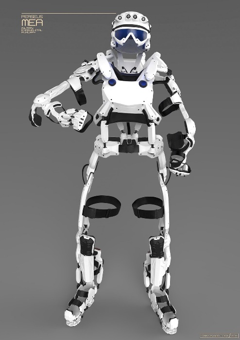 A. Автономные. За счёт наличия бортового источника энергии обеспечивается автономное функционирование ИМ. Одним из наиболее характерных примеров является ЭС BLEEX (рис. 13) или концептуальная разработка компании Rhadamanthys Systems - автономнный ЭС Perseus - MEA (Рис. 19).