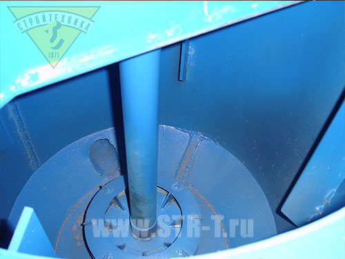 Турбина, расположенная в нижней части рабочей ёмкости, вращается со скоростью четыреста/шестьсот оборотов в минуту, а её лопасти имеют небольшой угол наклона к радиальному направлению. На неподвижных стенках цилиндрической ёмкости устанавливаются металлические рёбра, которые препятствуют проскадьзыванию компонентов смеси по внешей стенке камеры и обеспечивают полноценный процесс смесеобразования.